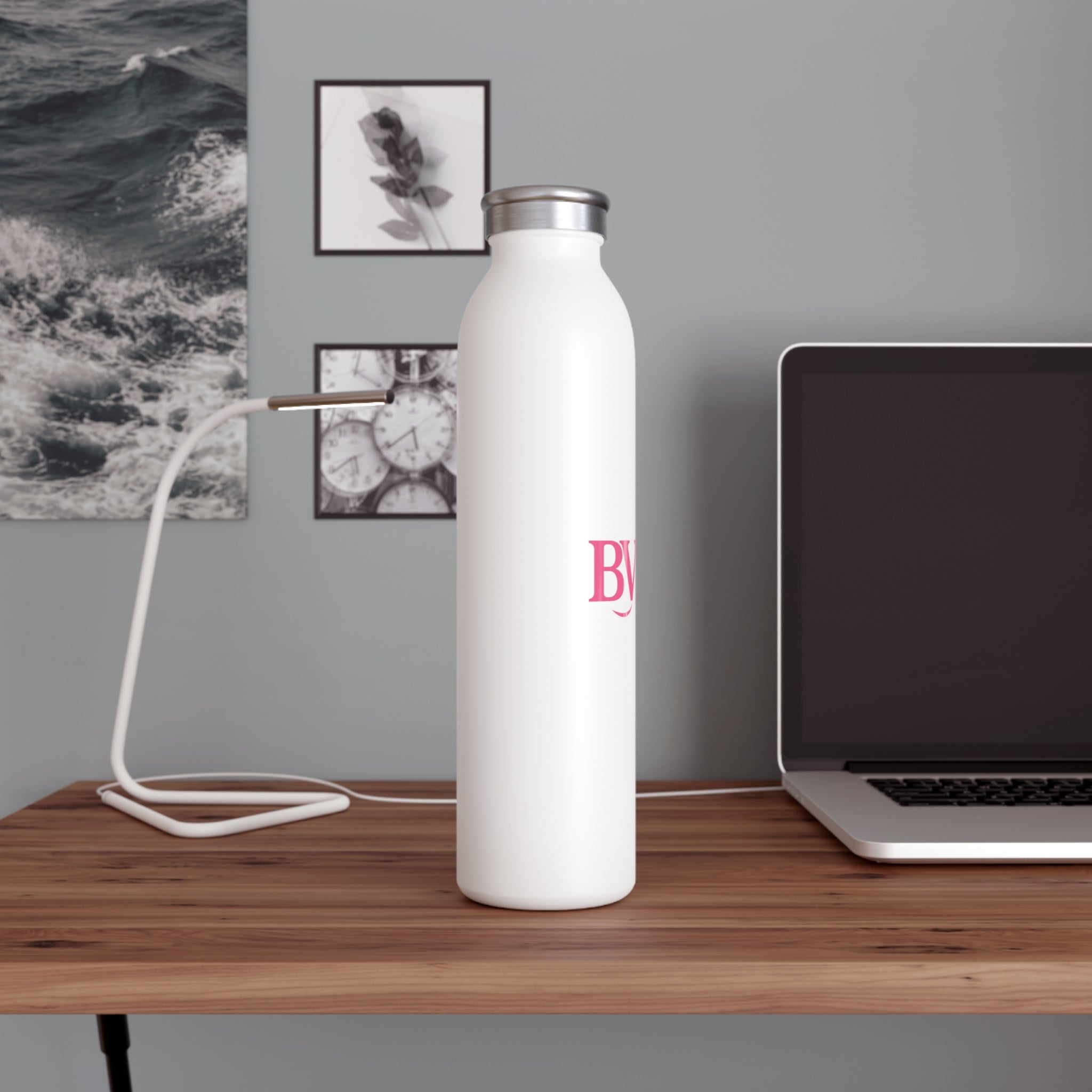 Bonita Vibes: BV Collection Elegant White Slim Water Bottle | Stylish Hydration for Yoga, Gym, Travel, Personalized Gift, Eco-Friendly -
