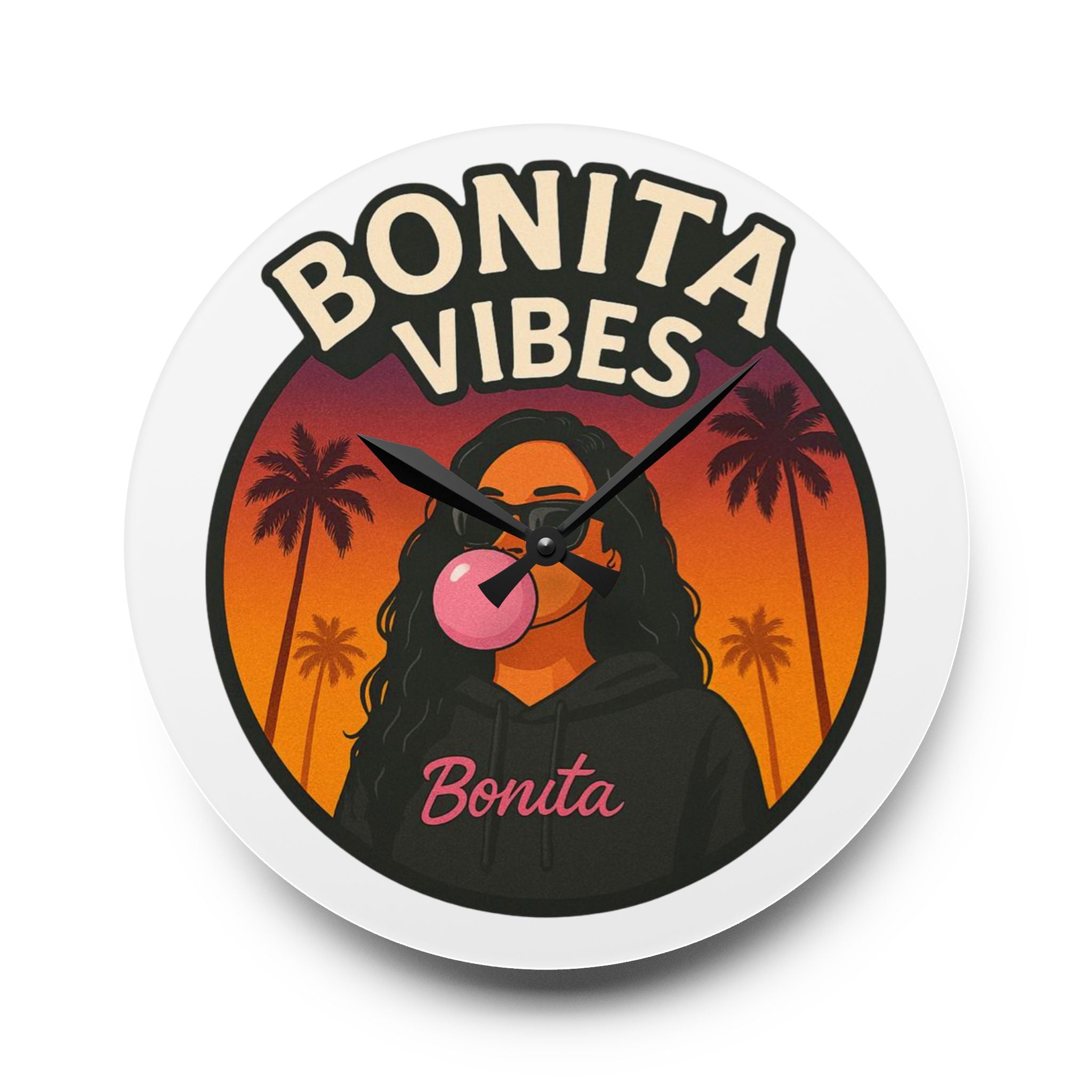 Bonita Vibes Acrylic Wall Clock | Home Decor, Unique Gift, Wall Art, Modern Clock, Stylish Timepiece -