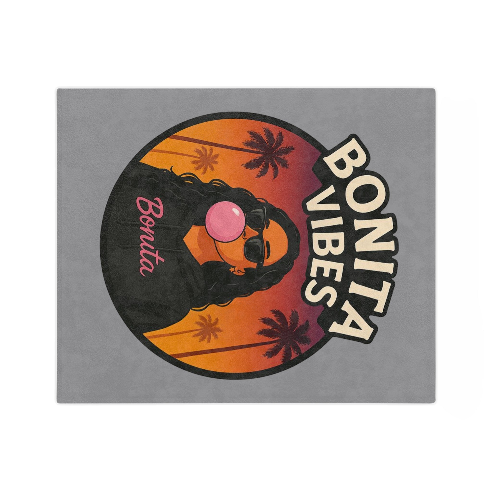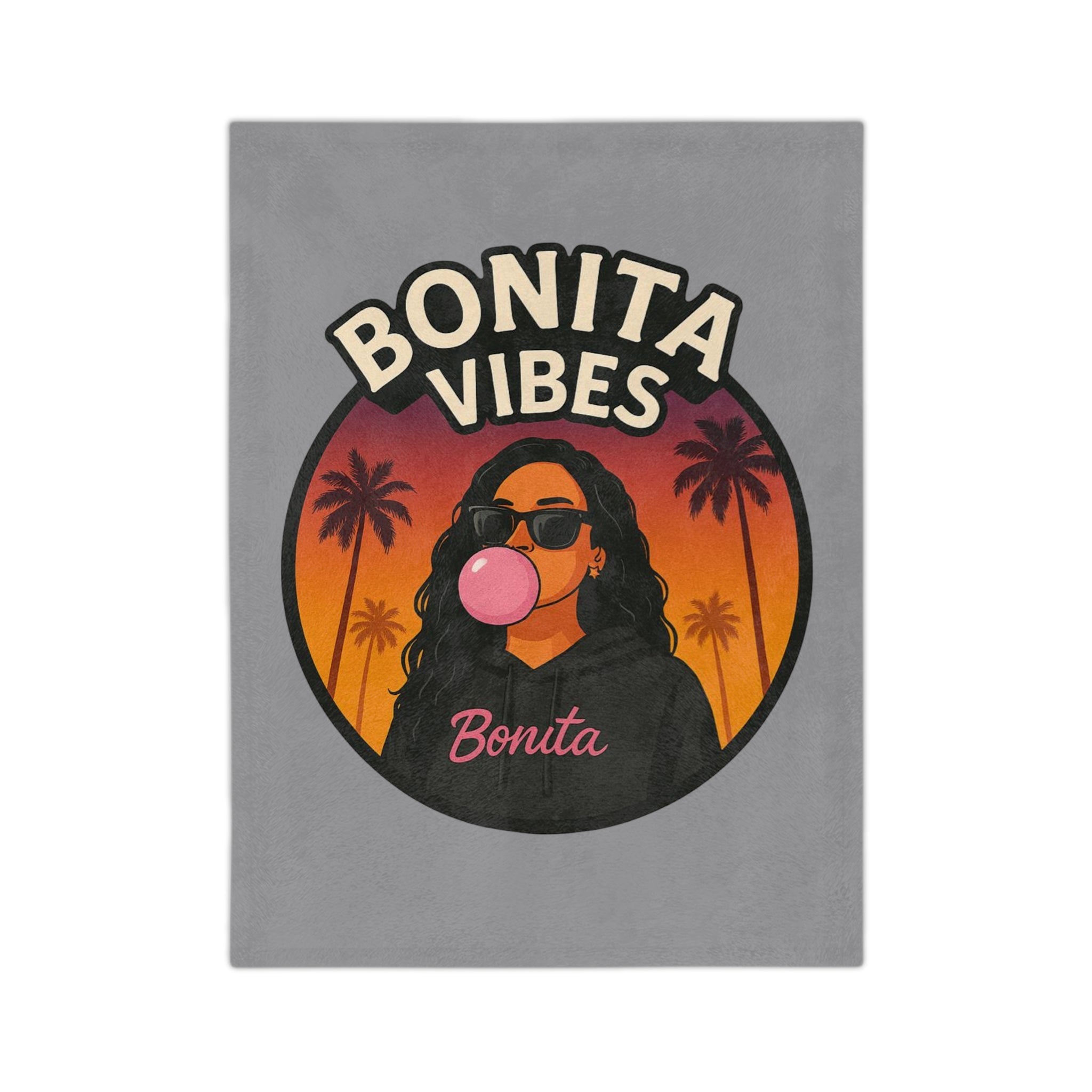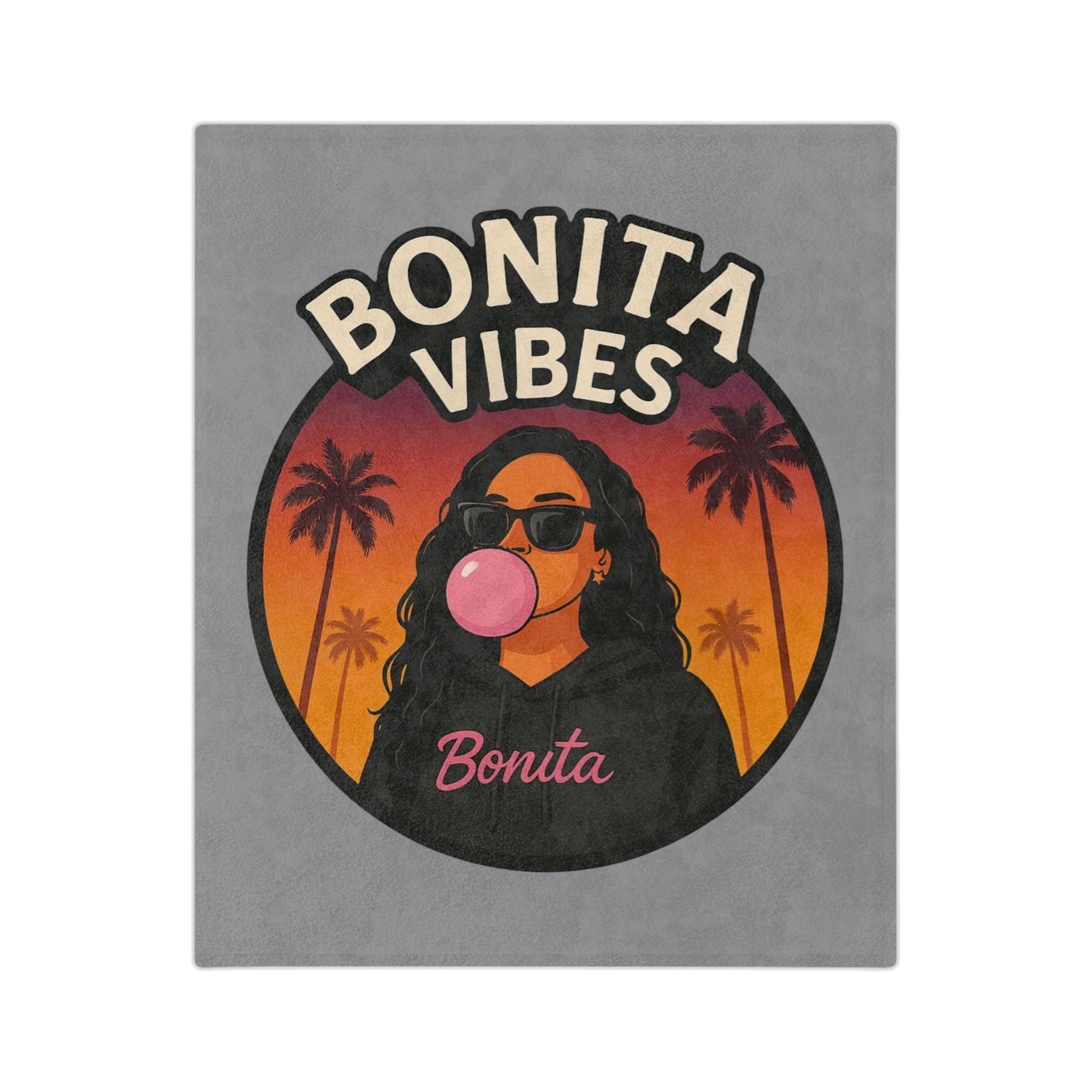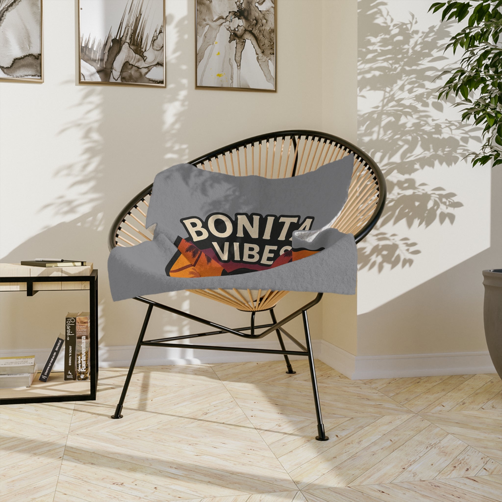 Bonita Vibes: Sunset Sway Grey Blanket, Cozy Velveteen Throw, Bohemian Home Decor, Gift for Her, Summer Vibes Decor, Pink Bubblegum Design -