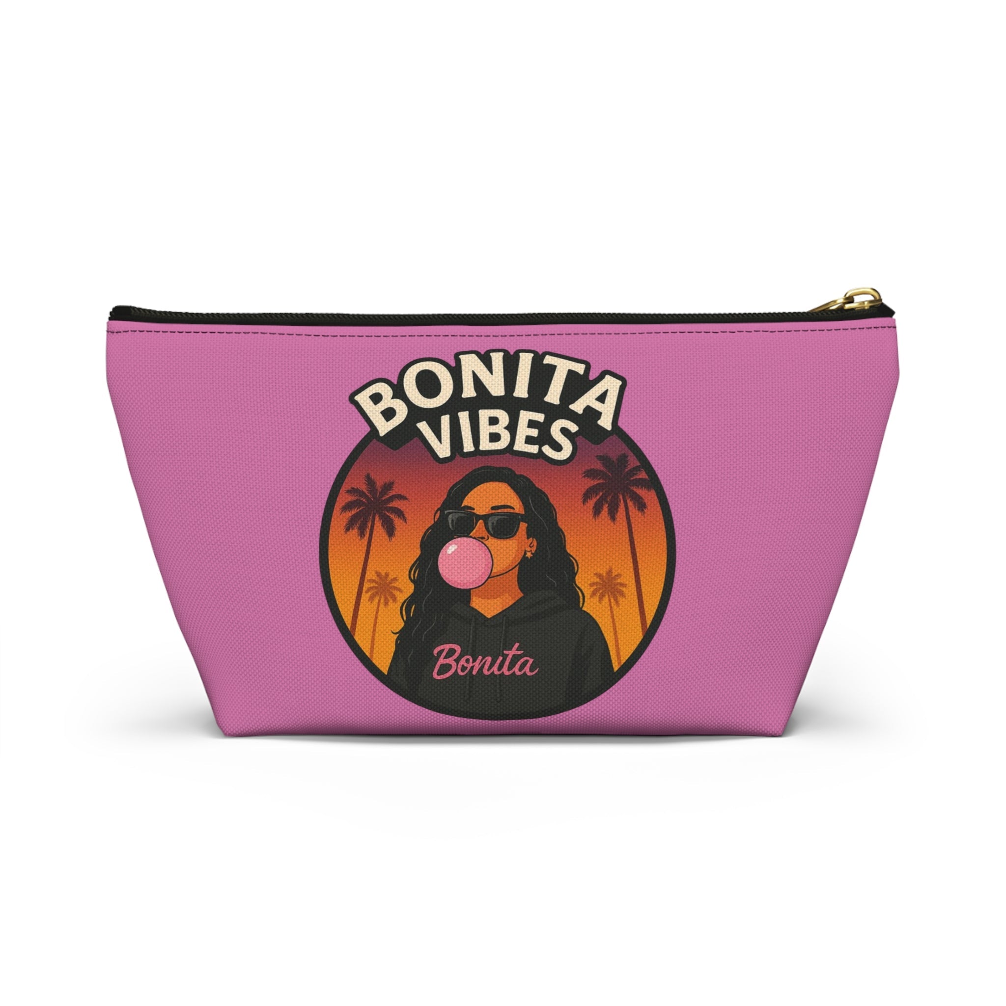 Bonita Vibes: Sunset Sway Light Pink Accessory Pouch | Stylish Makeup Bag, Travel Pouch, Trendy Organizer, Fun Gift, Summer Essentials -