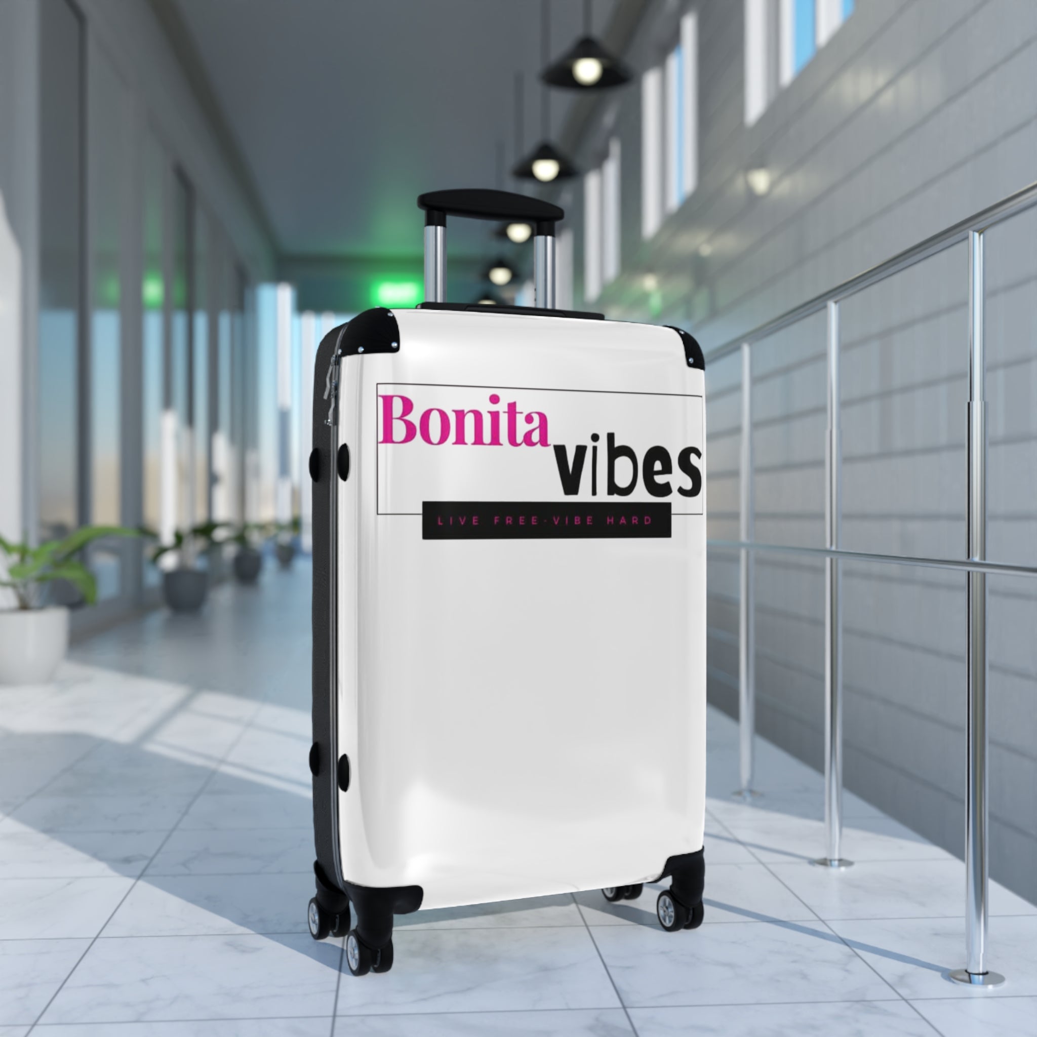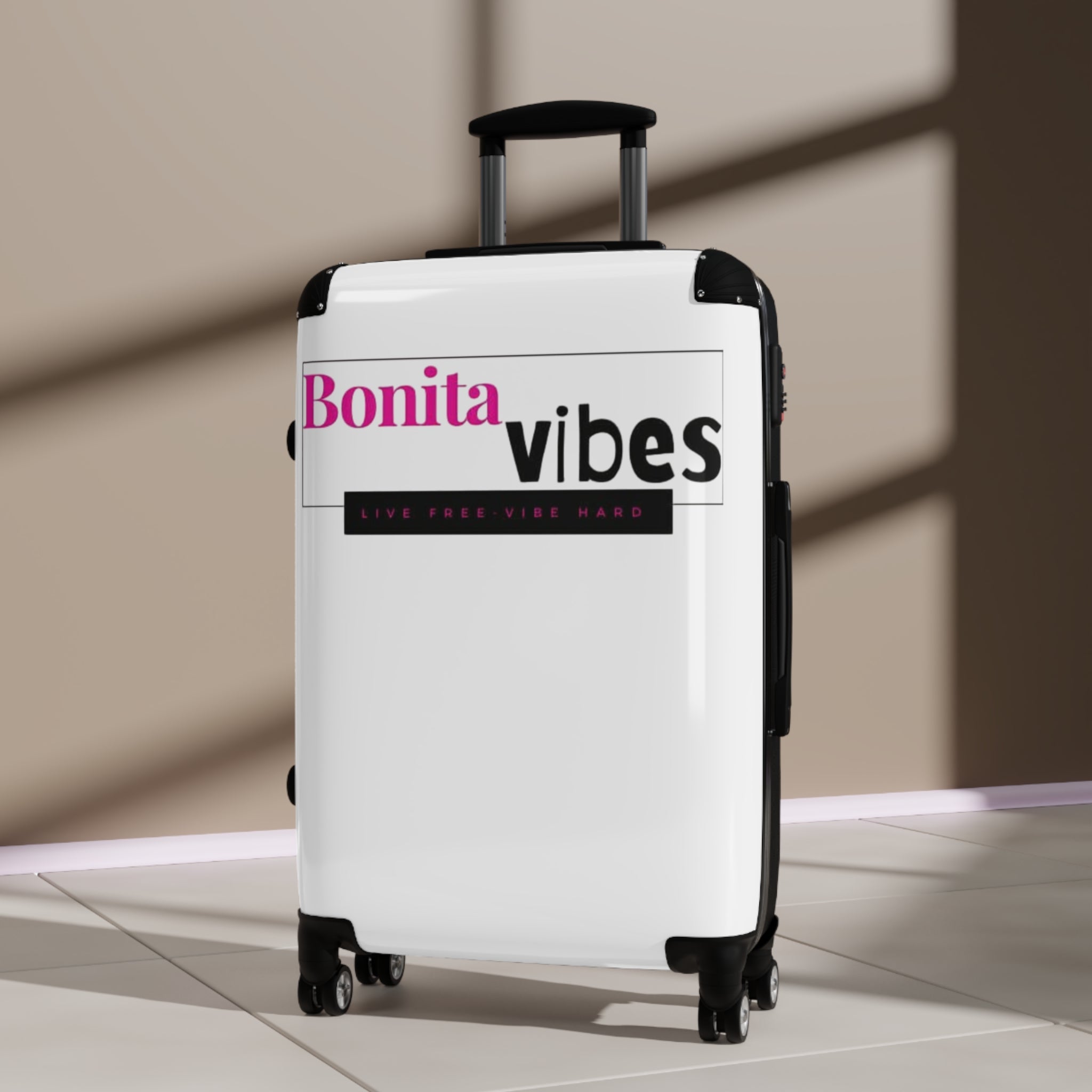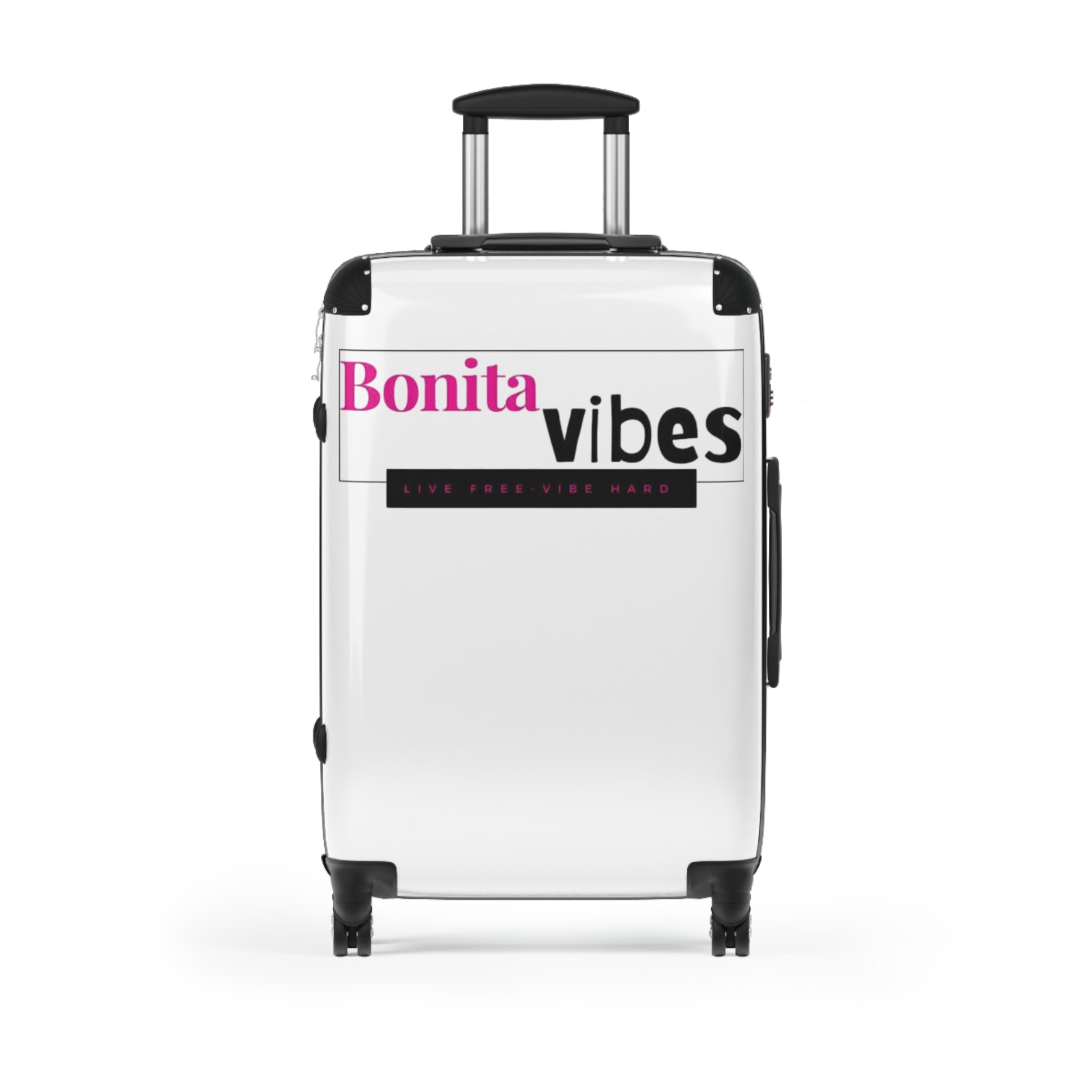 Bonita Vibes: VIBES UNLEASHED White Travel Luggage - Stylish Travel Carry-On, Perfect for Vacation, Weekend Getaways, Summer Adventures, Fashion Travel Bag -