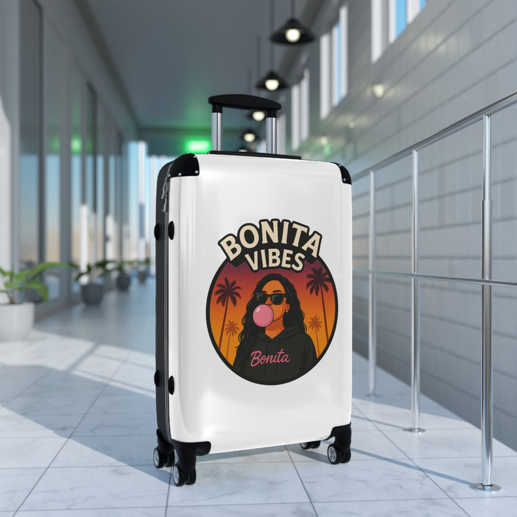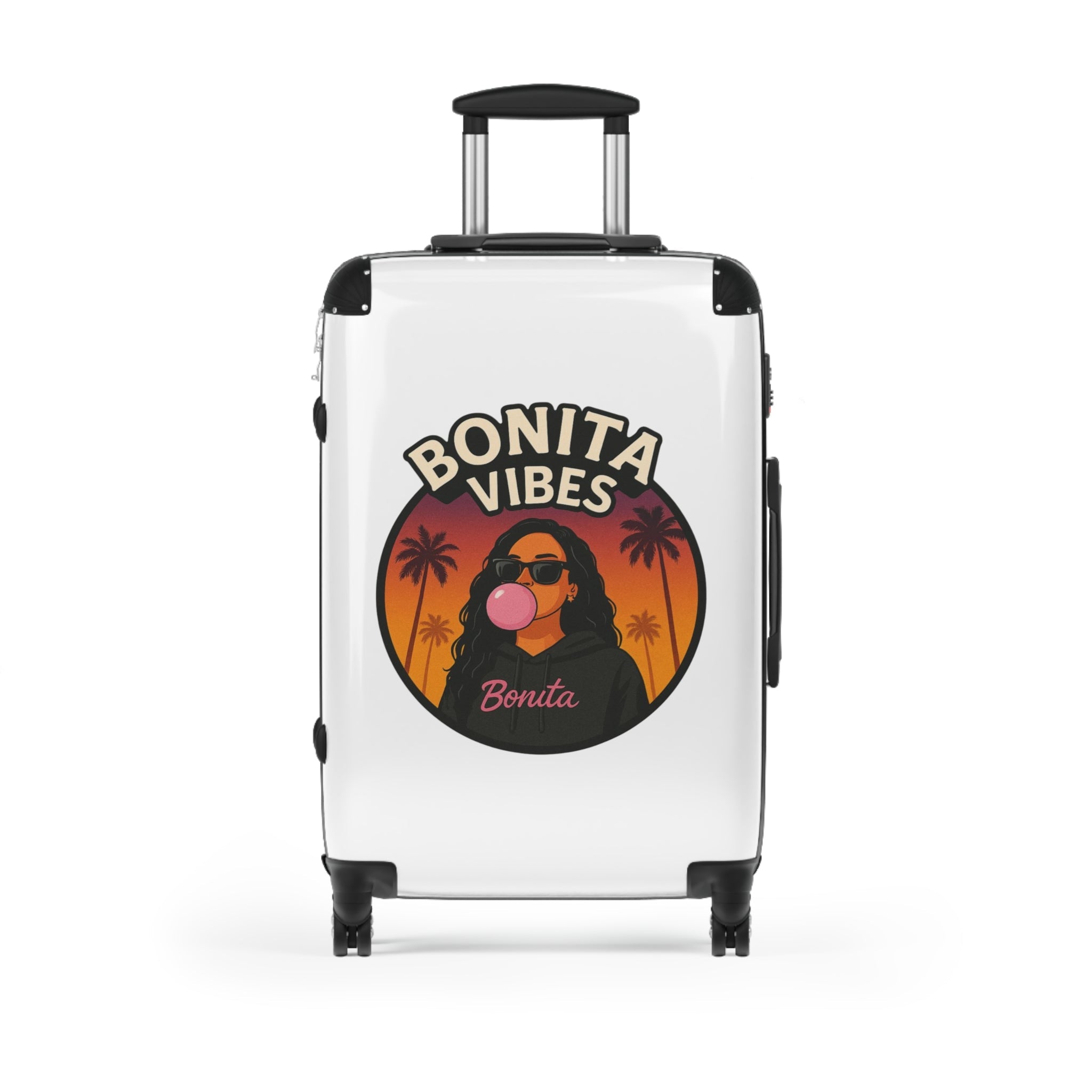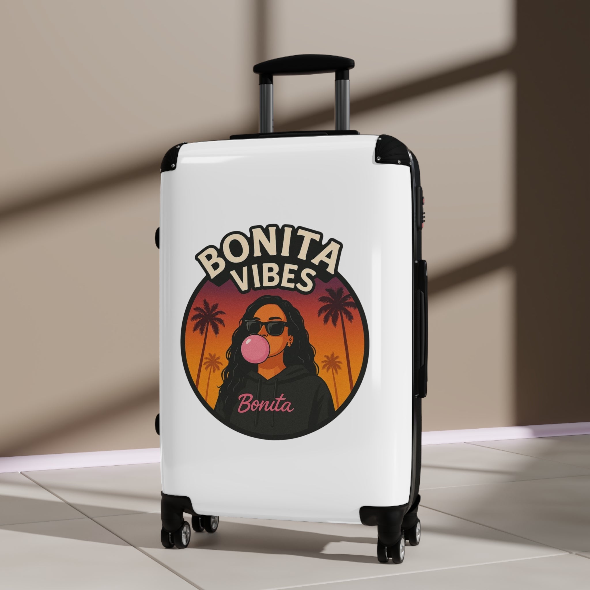 Bonita Vibes: VIBES UNLEASHED White Travel Luggage - Stylish Travel Carry-On, Perfect for Vacation, Weekend Getaways, Summer Adventures, Fashion Travel Bag -