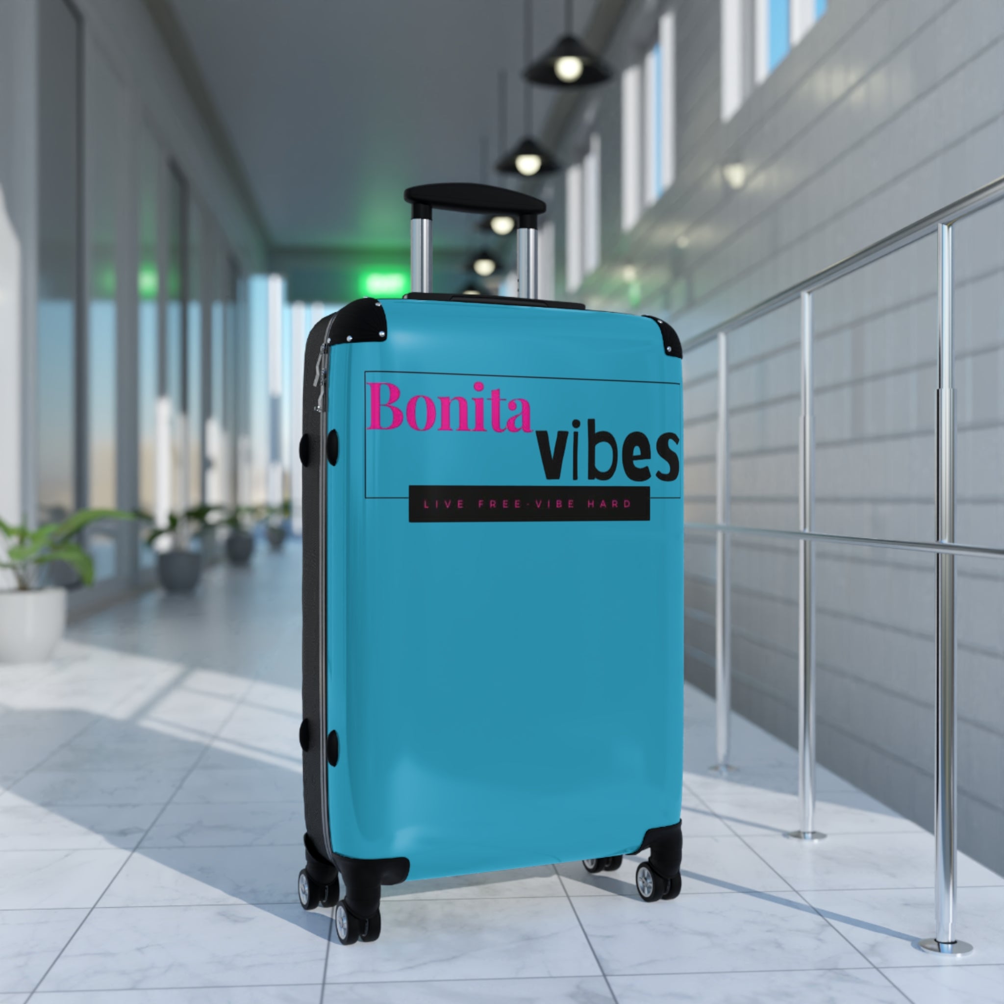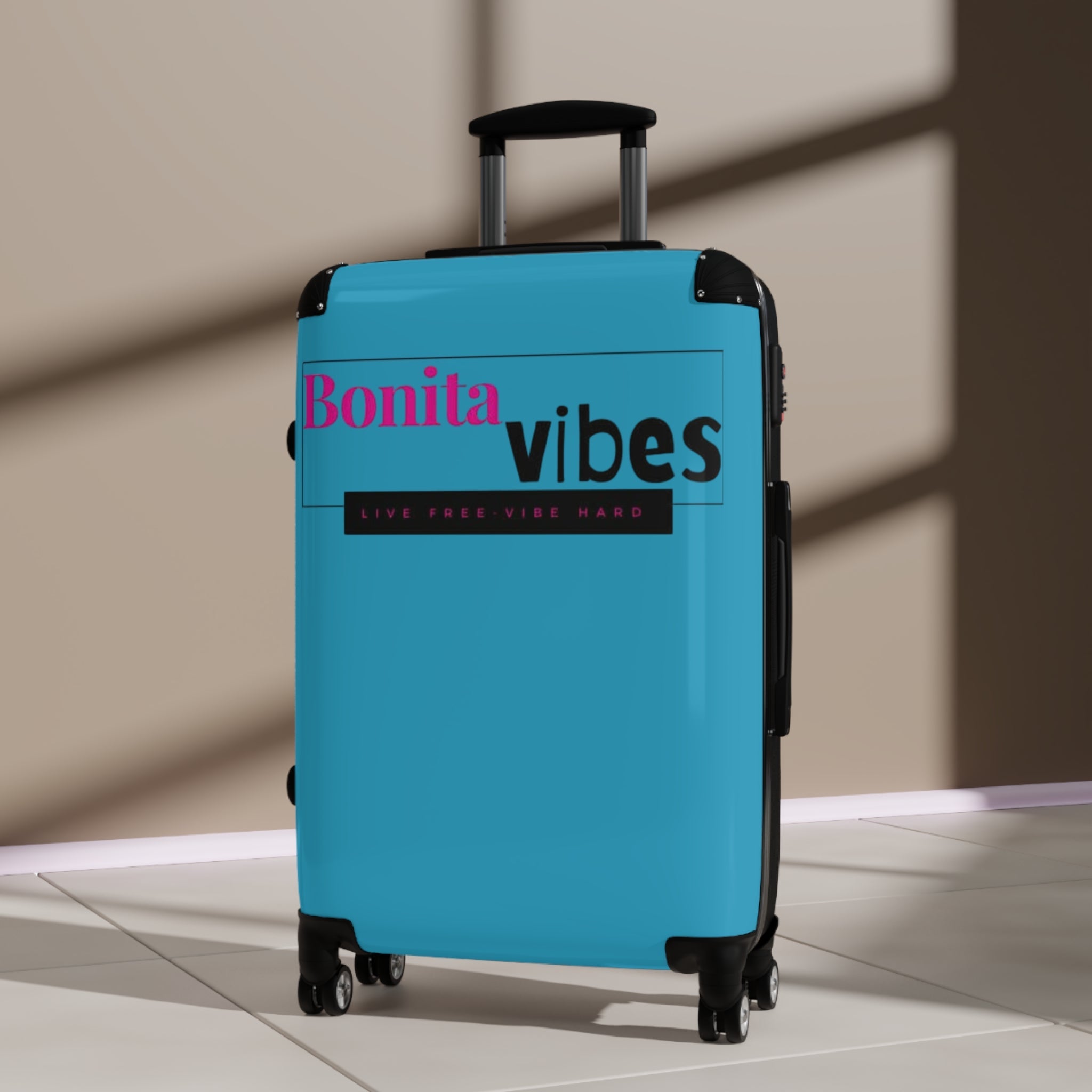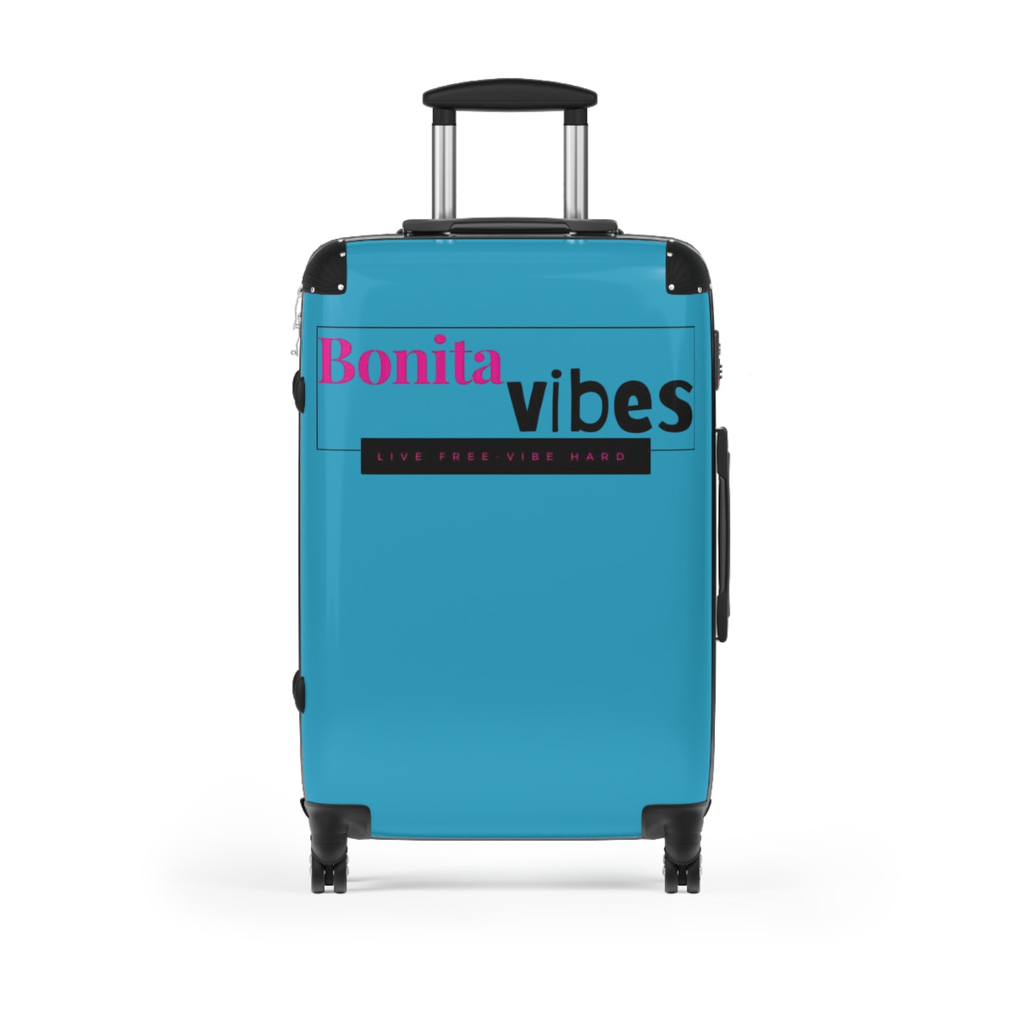 Bonita Vibes: VIBES UNLEASHED Turquoise Suitcase - Stylish Travel Carry-On, Perfect for Vacation, Weekend Getaways, Summer Adventures, Fashion Travel Bag -